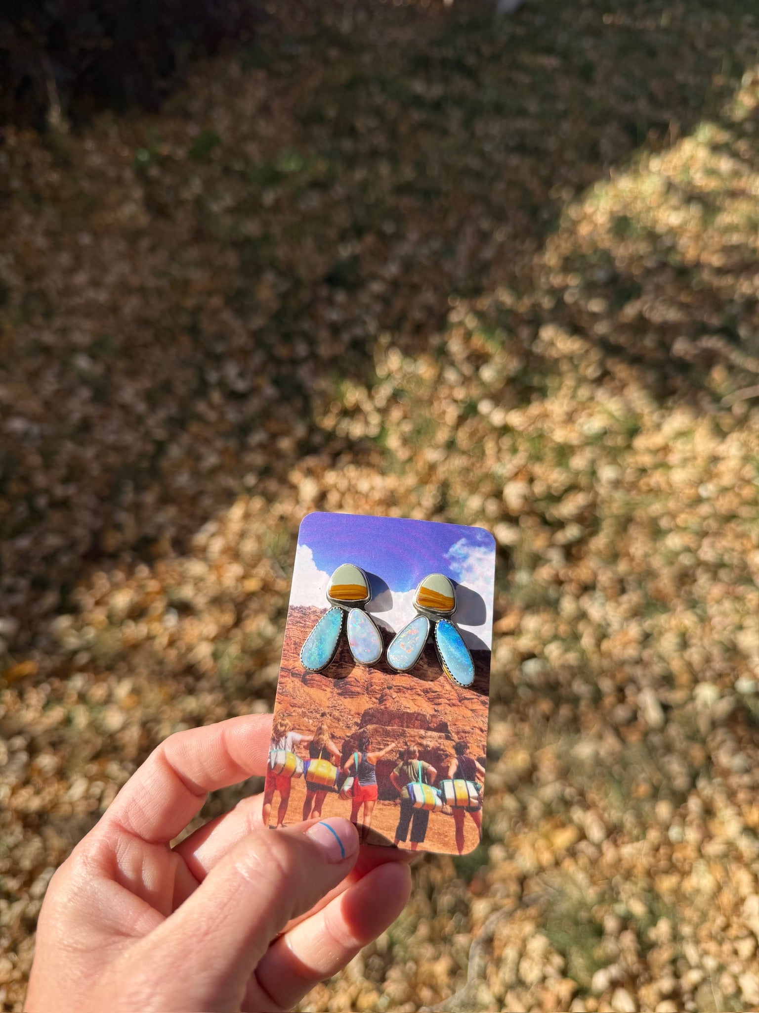 Jasper + opal firefly earrings set in sterling silver. Sterling silver posts and earring backs. Patina finish.