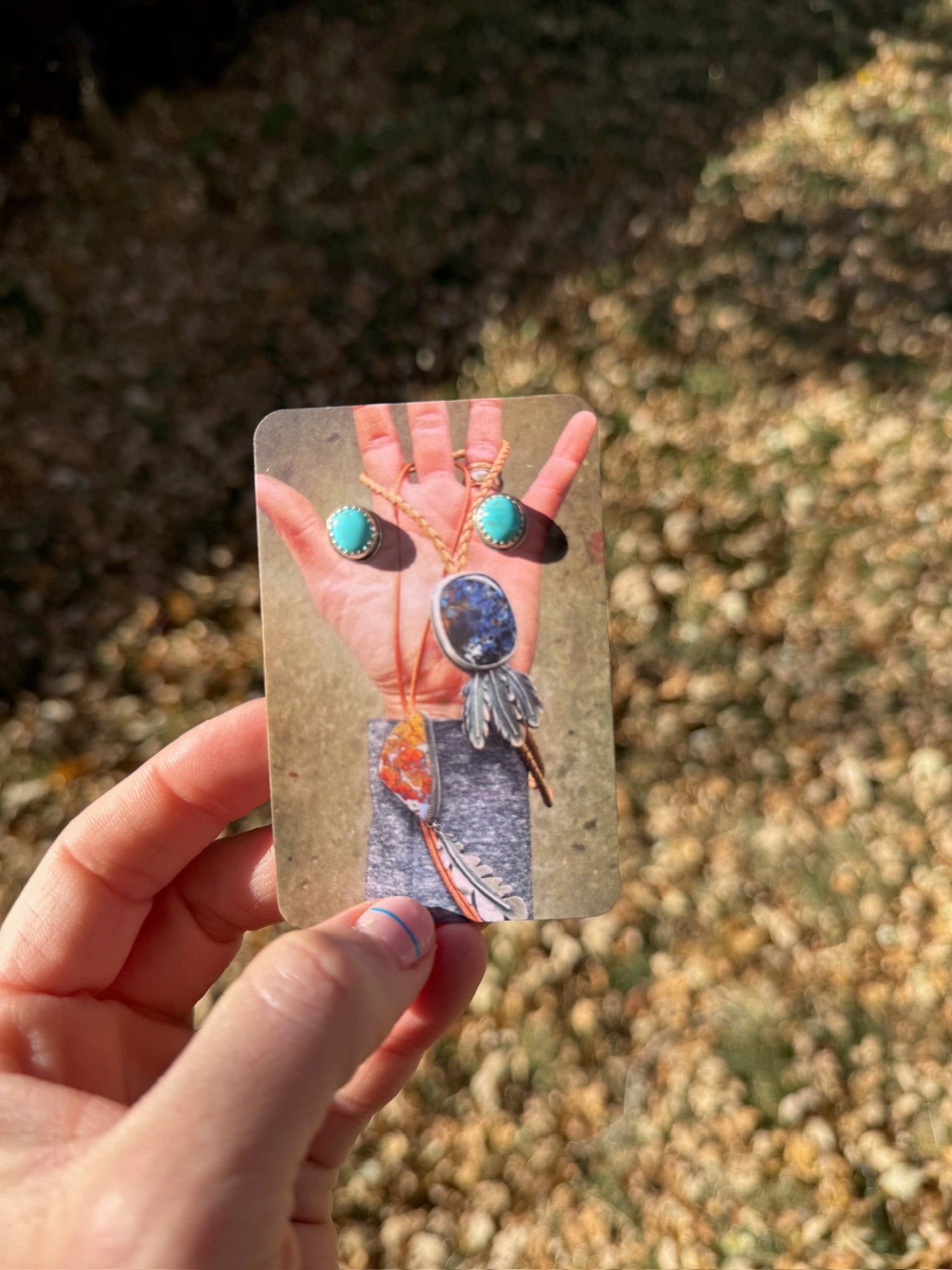 Turquiose studs set in serrated bezel. Sterling silver posts and earring backs.